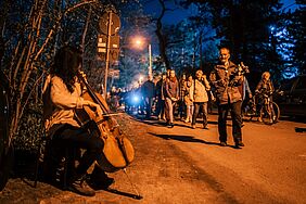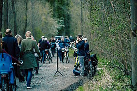 Bildtitel: Musik der Zwangsarbeiterinnen am Schneeblumen-Gedenkweg. Foto: Tom Thiele