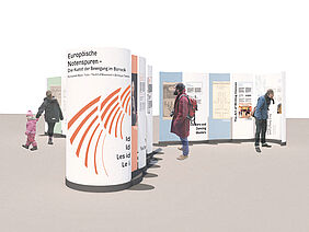 Bildtitel: Modellansicht Wanderausstellung „Europäische Notenspuren – Die Kunst der Bewegung im Barock“; Entwurf und Design Michelle Berger