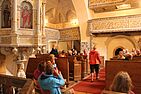 Als erstes die jüngste der drei, die Orgel der Emmaus-Kirche Sellerhausen: Die Orgel mit 2 Manualen und Pedal mit 32 Registern schuf im Jahr 1900 Richard Kreutzbach (1839–1903) aus Borna. Später wurde sie leicht erweitert und umfasst jetzt 3 Manuale und Pedal mit 33 Registern. Weiter ging es mit dem Rad zur Stadtkirche nach Naunhof. Die dortige Orgel mit zwei Manualen und Pedal mit 21 Registern wurde 1882 erbaut von Friedrich Ladegast (1818-1905) aus Weißenfels. An der letzten Station erklang die älteste spielbare sächsische Orgel, die in der Wehrkirche in Pomßen steht, mit einem Manual und Pedal mit 12 Registern Sie wurde 1671 erbaut von Gottfried Richter aus Döbeln.